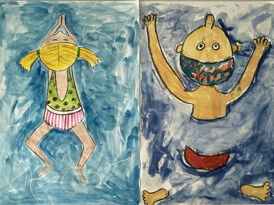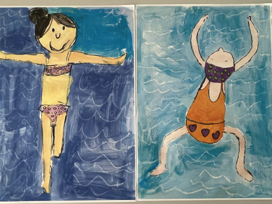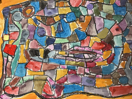 Nachdem sich die Klasse 3b Postkarten des spanisch-katalanischen Künstlers Joan Miró angesehen hat, wurden eigene Kunstwerke in seinem Stil entworfen. Am Ende wurden die Hintergründe mit wässriger Tinte bespritzt. Wer erkennt sie nicht, die Ähnlichkeit zum Vorbild?