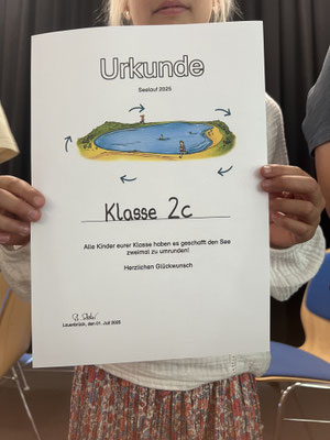 Vor den Sommerferien hat Frau Berndt begonnen, mit den Kindern Übungen für das Sportabzeichen zu machen. Immer mittwochs von 14 bis 15 Uhr haben die Kinder Standweitsprung, Weitsprung, Kurzstreckensprint (30m und 50m je nach Alter), Weitwurf und Seilspringen trainiert. Auf dem Schulhof der Fintauschule wurde dann die Langstrecke 800m abgenommen. Manche Kinder haben auch während der Ferienbetreuung das Laufabzeichen gemacht. So konnten wir bei unser Siegerehrung am 26.02.25 viele Gold-, Silber- und Bronzeabzeichen im Rahmen einer kleinen Schulfeier vergeben.