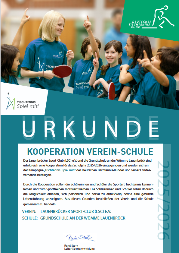 Zusammen mit den Übungsleitern des Lauenbrücker Sport-Clubs trainieren die Schülerinnen und Schüler im Rahmen des Ganztages das Zusammenspiel zwischen Tischtennisschläger und Ball. Am Ende eines Halbjahres können die Kinder recht sicher ganze Ballwechsel mit Aufschlag, Vorhand und Rückhand spielen und haben sichtbar Spaß an der Platte. Die Kinder können auch den Teil “Koordination” des Sportabzeichens mit Tischtennisübungen im Rahmen der AG absolvieren und zum Abschluss des Halbjahres an einem spannenden Turnier teilnehmen.